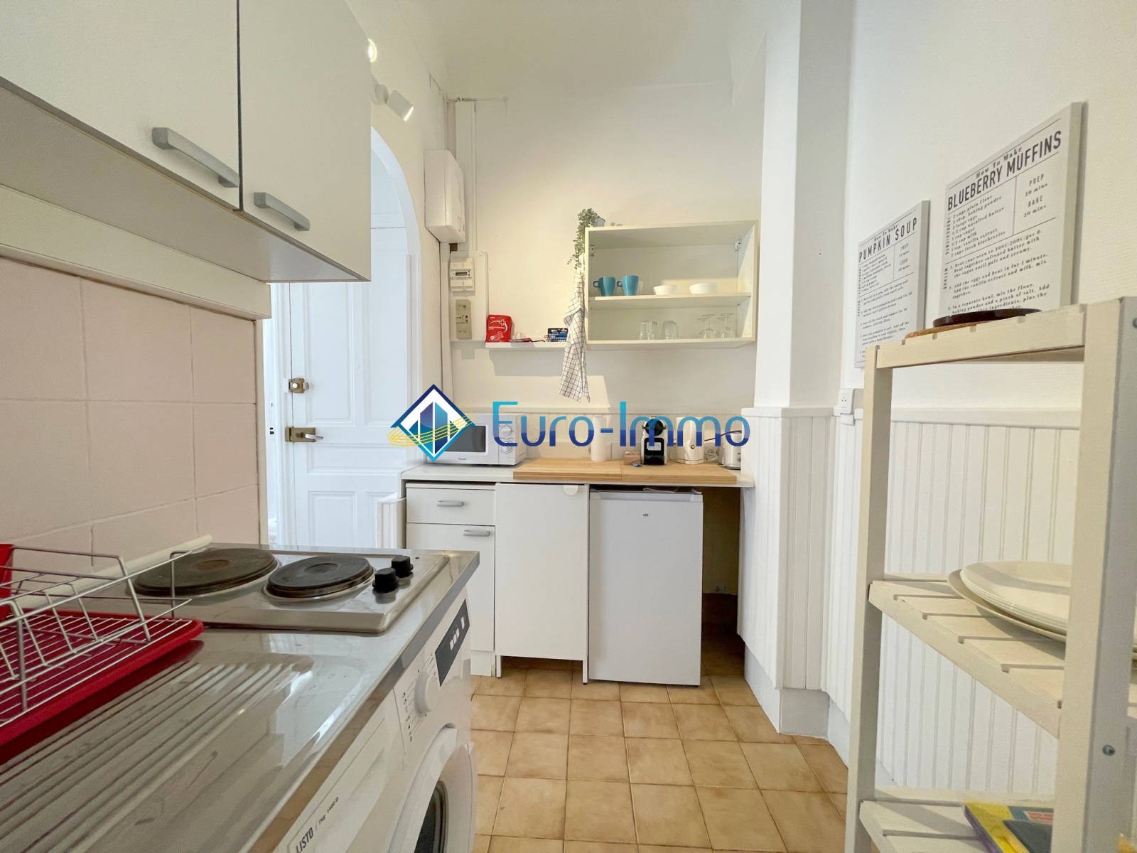 Cet appartement décoré avec goût, sis au 2ème étage (sans ascenseur) d'un petit immeuble se compose, d’une entrée, séjour, chambre, cuisine séparée équipée, salle de douche avec WC.