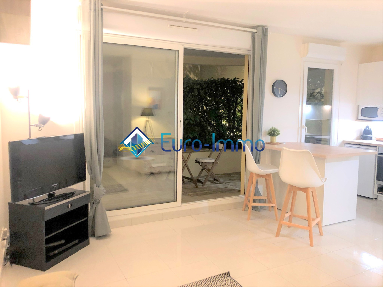 Cet appartement au rez-de-jardin se compose d’une entrée, d’un séjour avec placard et coin bureau, d’une cuisine américaine équipée avec four traditionnel, micro ondes, plaque induction, d’une spacieuse salle de douche avec WC, lave linge, et d’une terrasse de 8m².