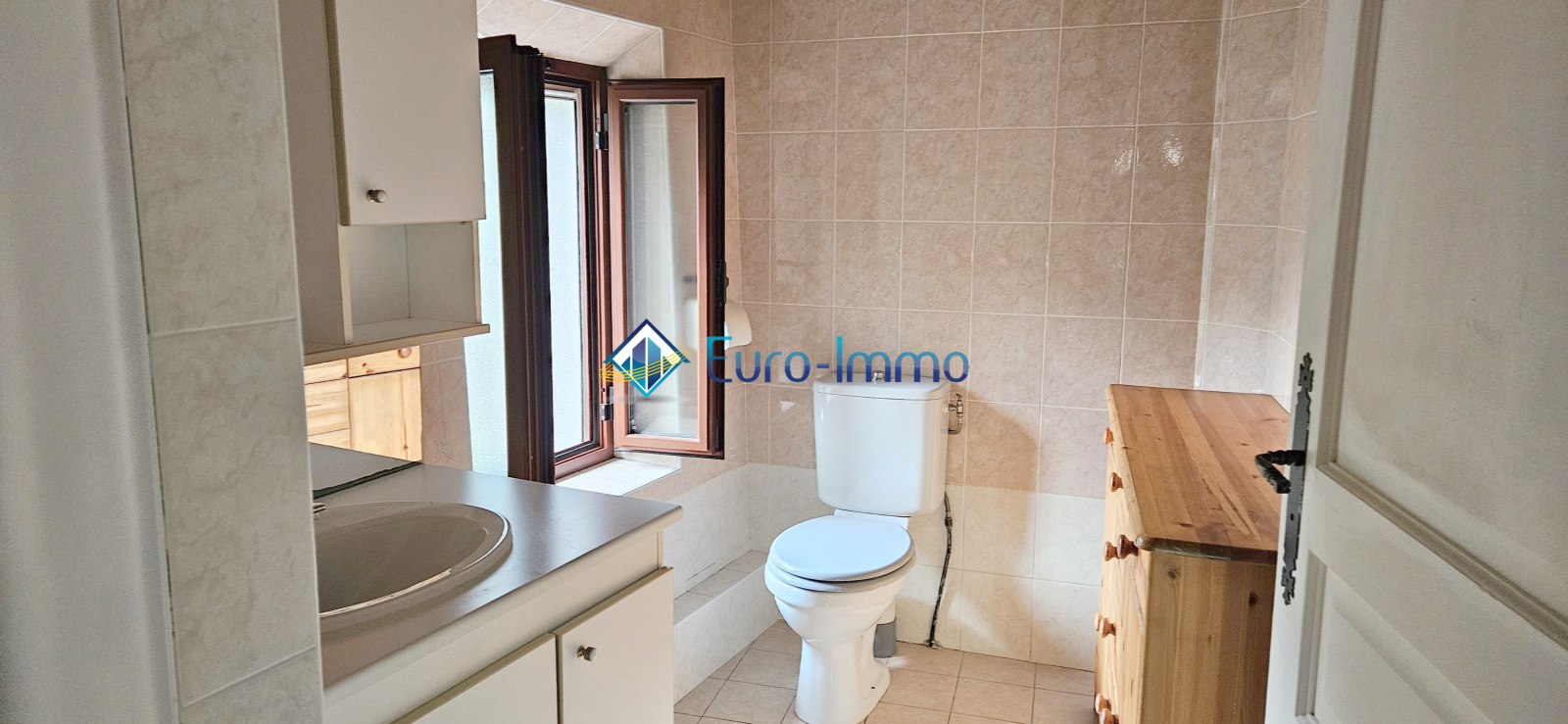 Au rez-de-chaussée : Une cuisine américaine semi-équipée avec ouverte sur le séjour, lumineuse et fonctionnelle