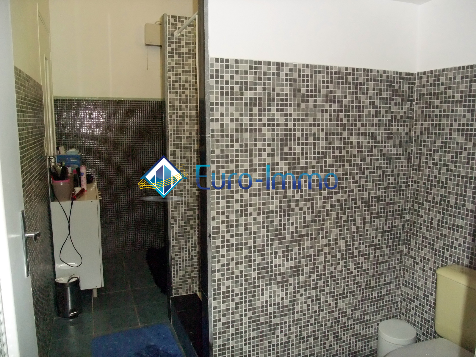 Cette villa sur deux niveaux est composé au rez-de-chaussée d'une large place de parking (véhicule + 2 roues), au 1er étage d'un appartement type T2, avec hall, placard, cuisine séparée, séjour, chambre, salle de bains et W.C. séparé, et au 2ème étage d'un appartement type T4 composé d'un séjour, salle à manger, cuisine séparée, 2 chambres, salle d'eau avec W.C.